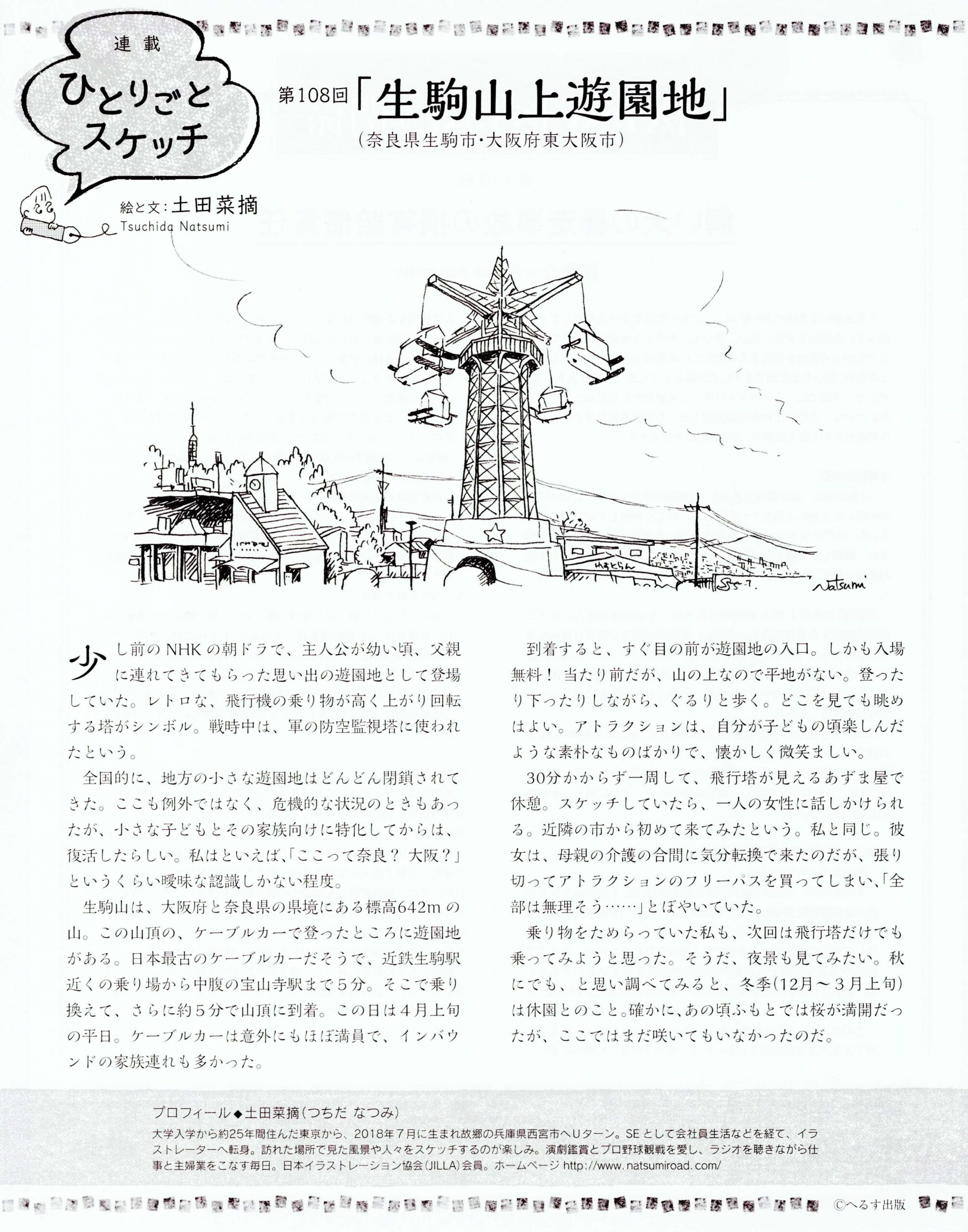 イラスト&コラム連載「ひとりごとスケッチ」第108回「生駒山上遊園地」