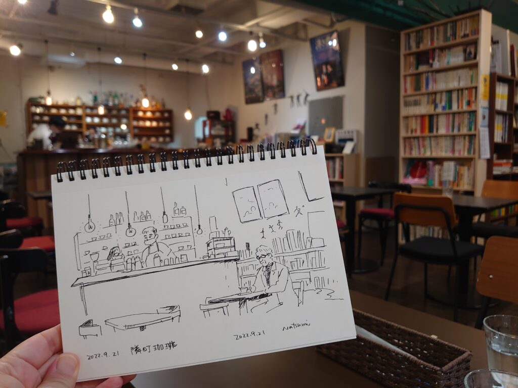 表紙になったスケッチは、2022年に上京した際、現在の店舗に立ち寄ったときに描いたもの。