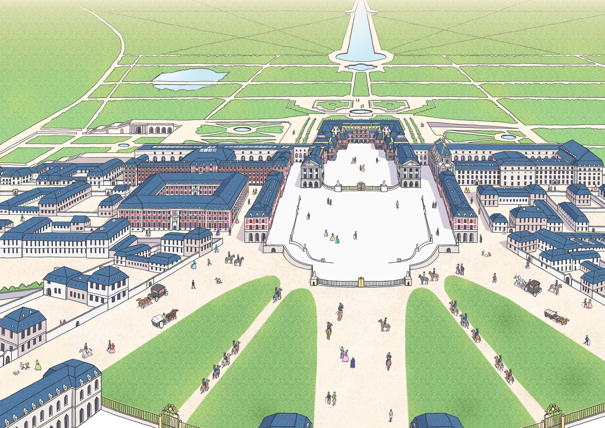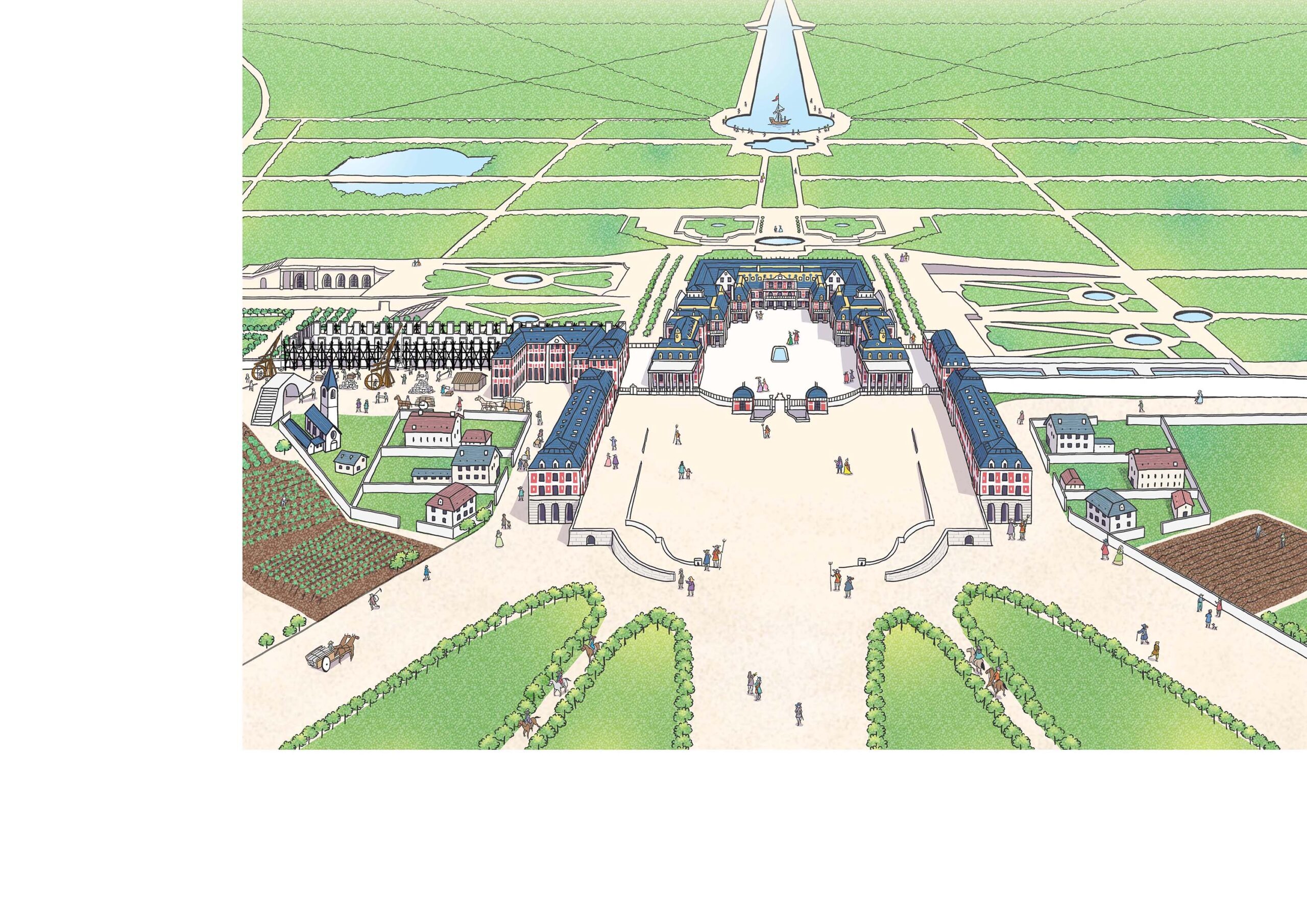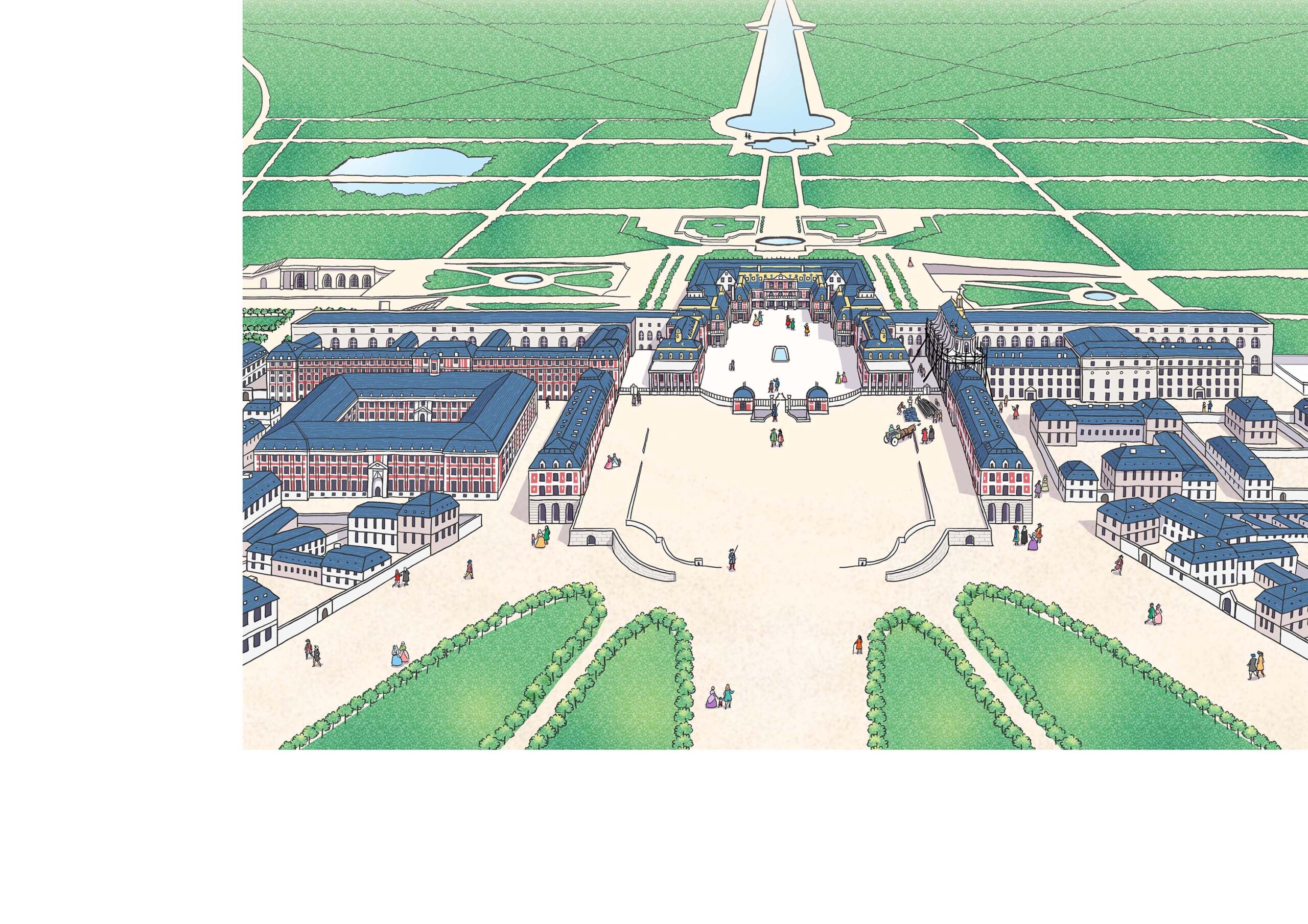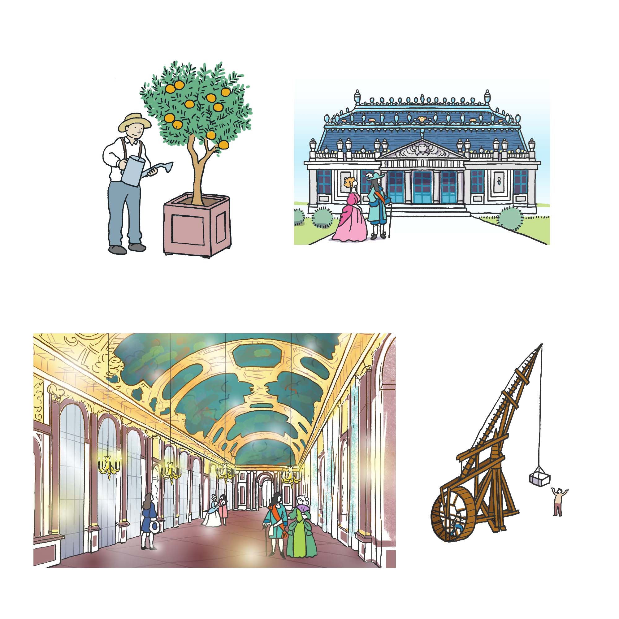 *古い時代の建造物で工法なども諸説があり、現在も研究・調査が引き続き行われているものもあるので、工事風景の描写は資料をもとにした想像図です。ベルサイユ宮殿|フレーベル館 出版サイト https://book.froebel-kan.co.jp/book/detail/9784577054031